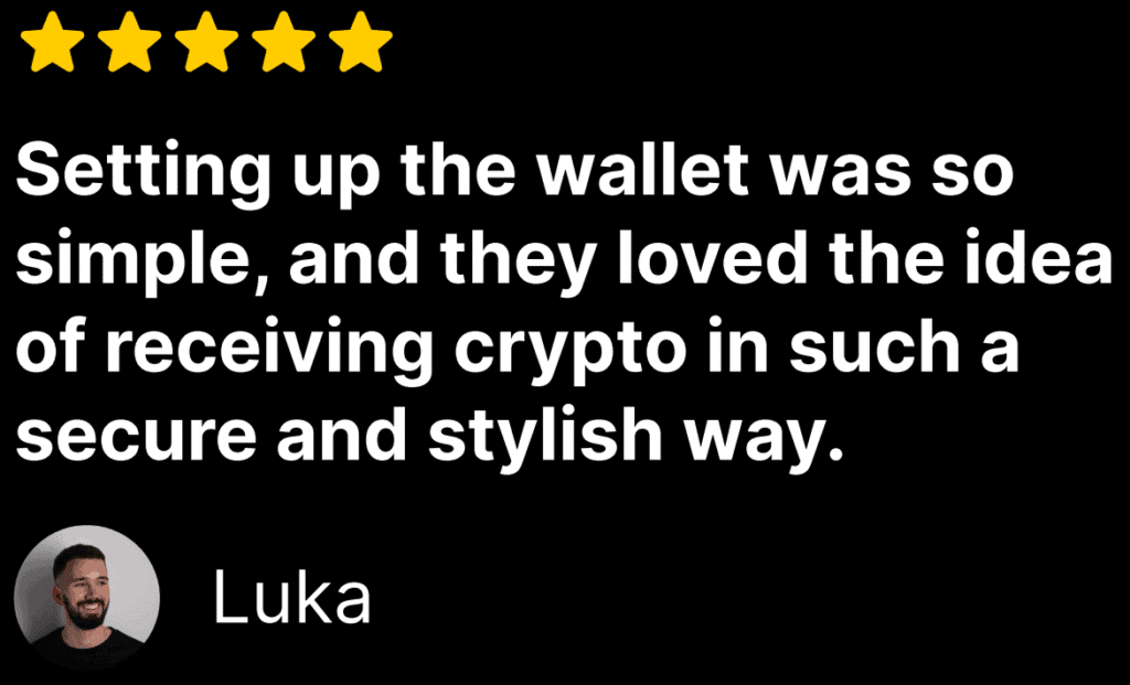 Our sleek, self-custodial NFC cards let you load cryptocurrencies and gift them to your loved ones in style.